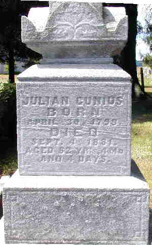 John CUNIUS [Parents] [image] was born on 10 Jun 1797 in Pennsylvania. He died on 16 Jan 1841 in Butler TWP, Luzerne County, Pennsylvania. He was buried in St. Johns, Drums, Butler TWP, Luzerne County, Pennsylvania. He married Julian SANDERS on 3 Apr 1816 in Pennsylvania.