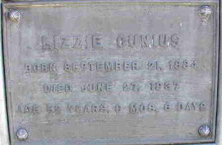 M i John Ambrose CUNIUS M ii Arthur CUNIUS F iii Anna CUNIUS M iv Neiman CUNIUS F v Getty CUNIUS F vi Elizabeth CUNIUS [image] was born on 21 Sep 1884 in Butler TWP, Luzerne County, Pennsylvania. She was christened on 12 Oct 1884 in St. John's Lutheran Church, St. John's, Butler TWP, Luzerne County, Pennsylvania. She died on 27 Jun 1937 in Drums, Butler TWP, Luzerne County, Pennsylvania. She was buried on 30 Jun 1937 in St. Johns, Butler TWP, Luzerne County, Pennsylvania.