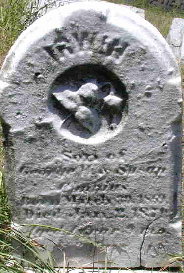 M i Henry CUNNIUS was born in 1866 in Reading, Berks County, Pennsylvania. M ii Irwin CUNNIUS [image] was born on 30 Mar 1869 in Pennsylvania. He died on 2 Jan 1871 in Reading, Berks County, Pennsylvania. He was buried in Lot 367 West; Section OP; Grave 6; Aulenbach, Cemetery, Reading, Berks County, Pennsylvania. M iii James CUNNIUS was born on 8 Dec 1870 in Pennsylvania. He died on 22 Oct 1872 in Reading, Berks County, Pennsylvania. He was buried in Lot 367 West; Section OP; Grave 6; Aulenbach, Cemetery, Reading, Berks County, Pennsylvania. M iv Howard CUNNIUS M v George W CUNNIUS